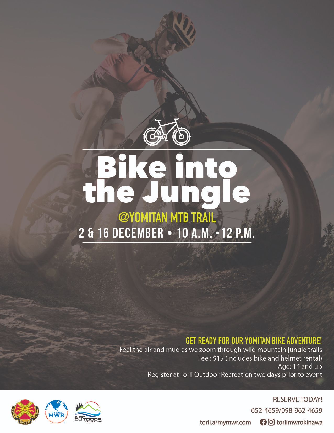 Join us at Torii Outdoor Recreation for a bike adventure! Feel the air and the mud as we zoom through wild mountain jungle trails in Yomitan!