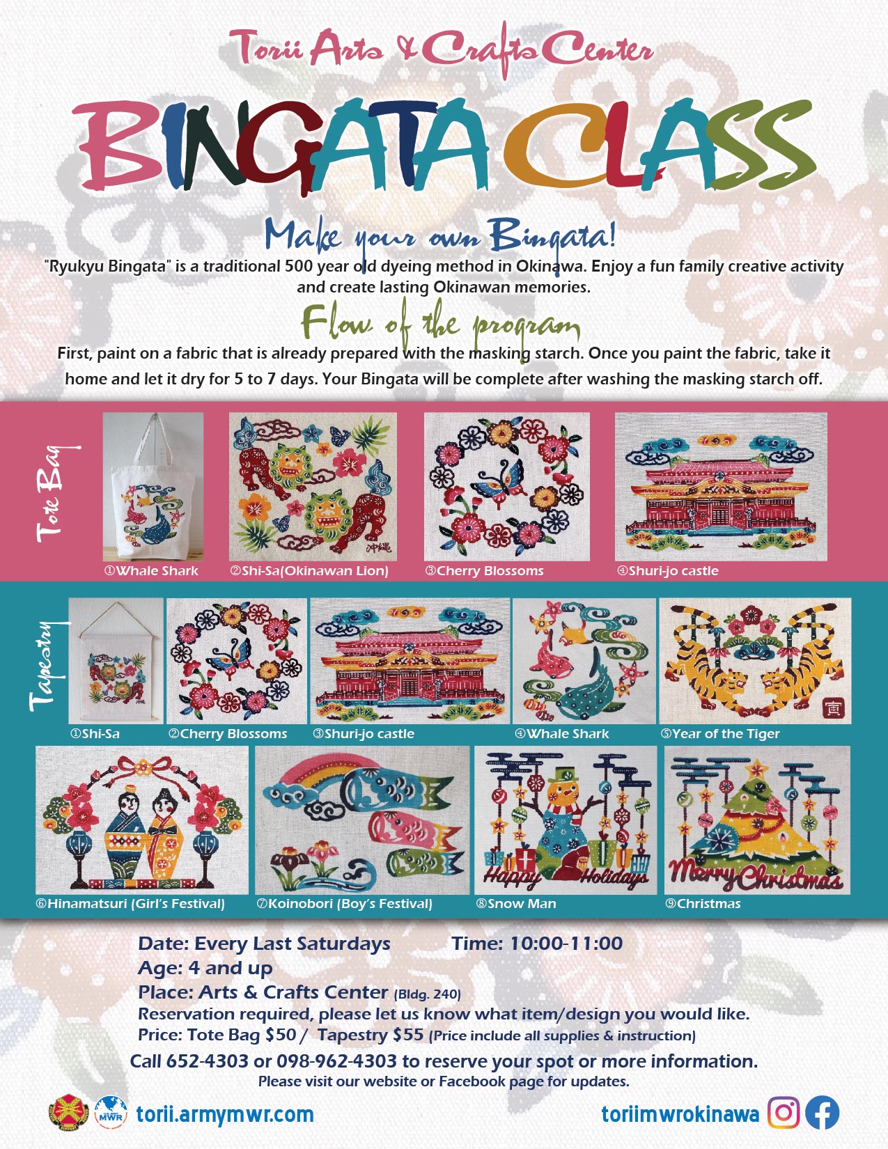 Torii Arts & Crafts will be offering the traditional art of bingata class!