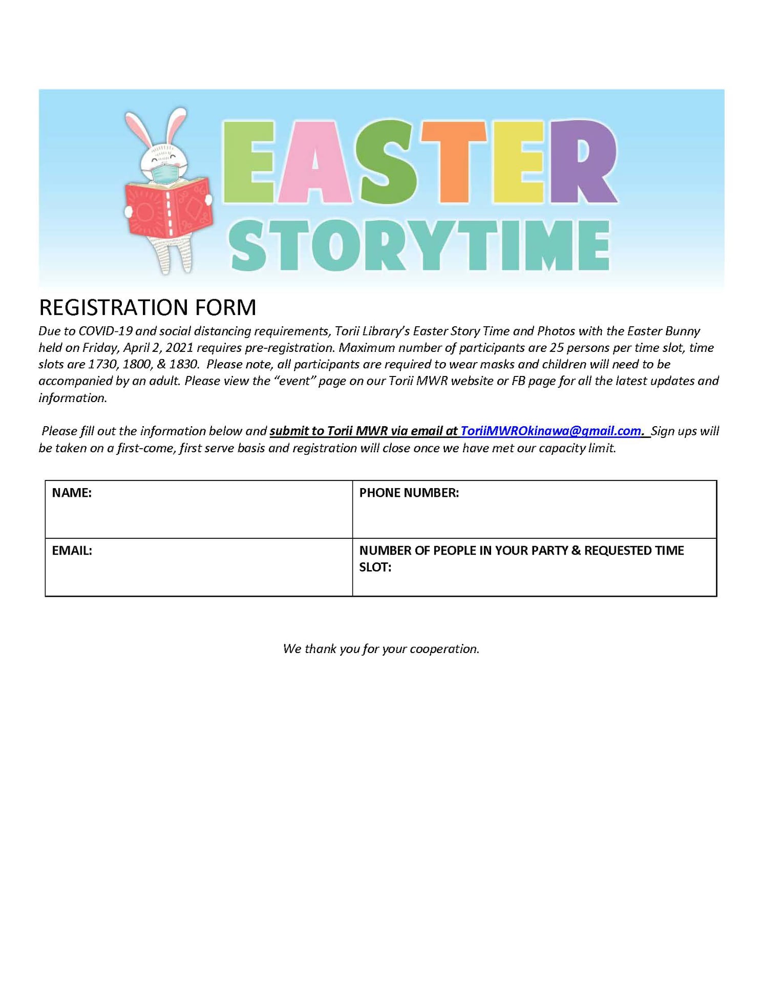 Join Torii Library at CJ's Sunset Grill down at Torii Beach for a free story time with warm island breezes and special guest, The Easter Bunny! After the story time, the Bunny will be available for photos. So make sure to bring your cameras!