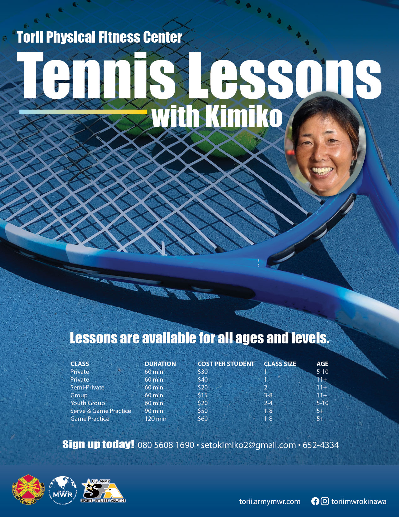 Book tennis lessons on your local court! Click here for more information.