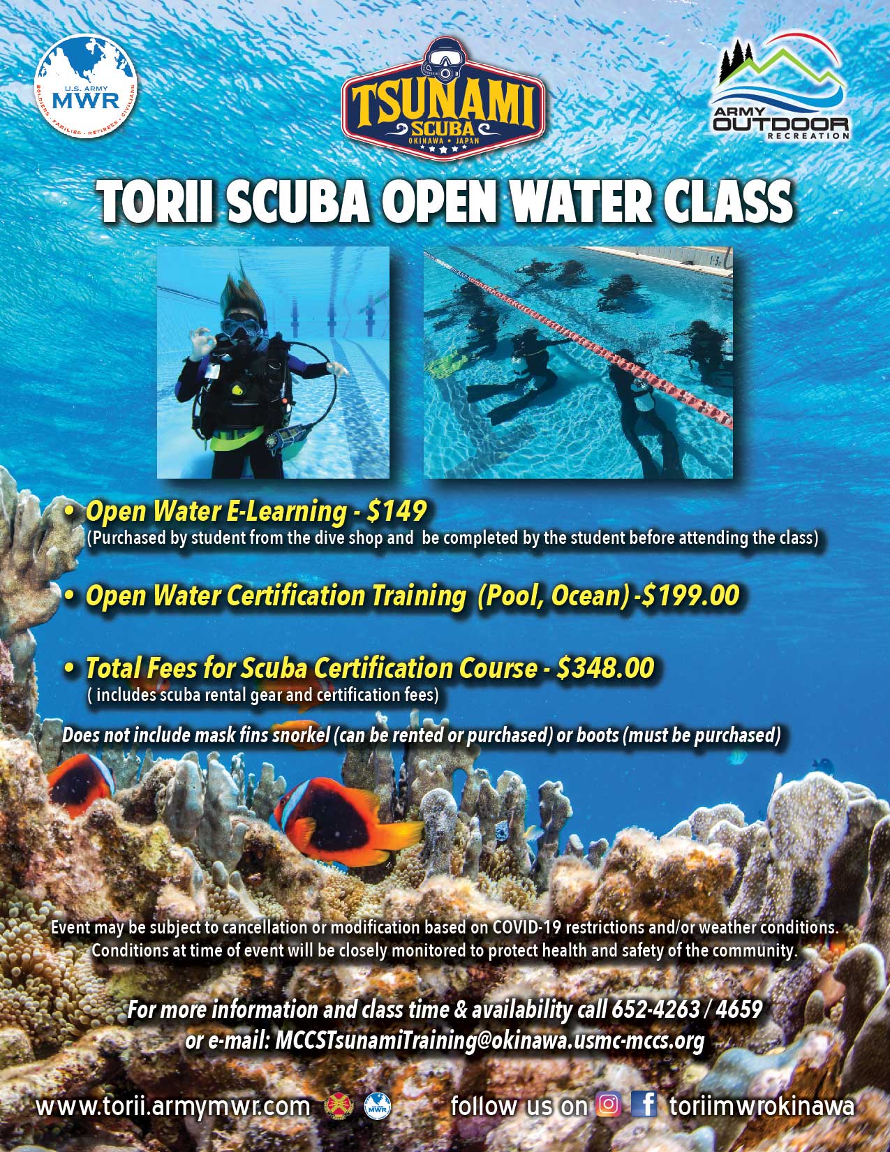Torii Scuba has open water classes available now! Call 652-4263 for a schedule of classes and to register today!